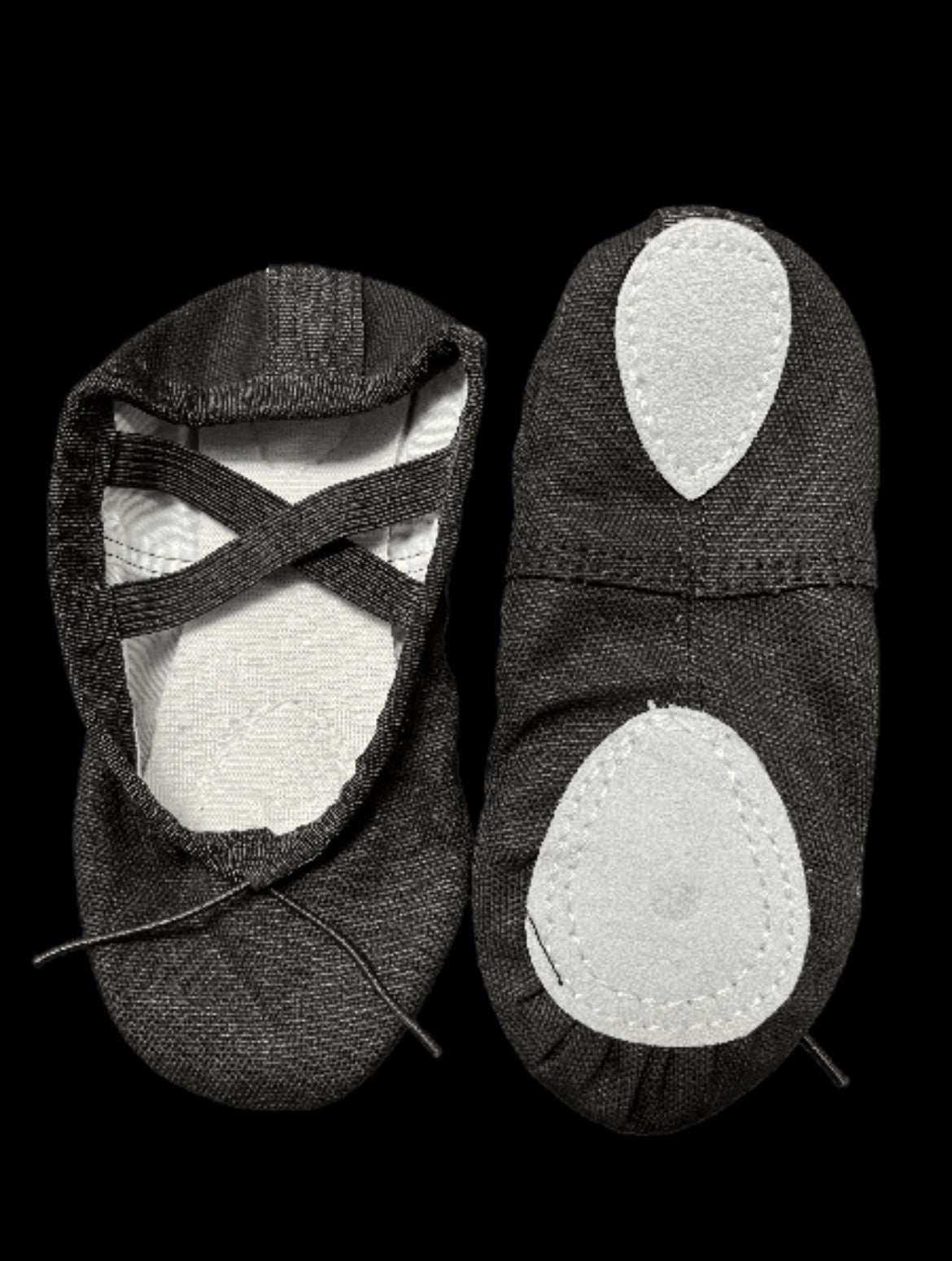 Child-size canvas split sole slipper perfect for dance or gymnastics. Elastic strap and adjustable draw string for better fit.